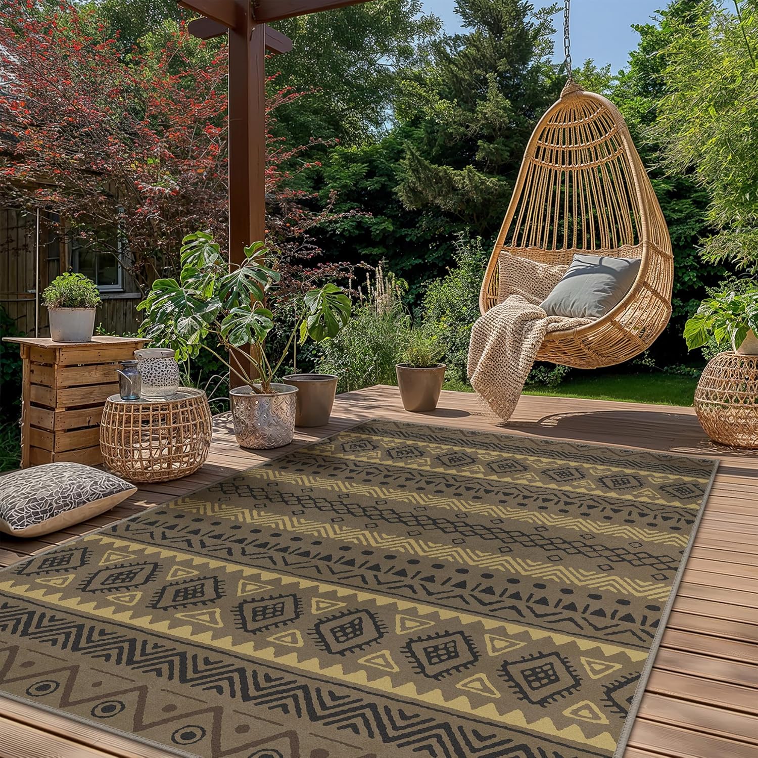 Made from eco-friendly materials, this outdoor rug combines durability with timeless design. It’s fully waterproof and UV-resistant, so colors stay vibrant under the sun and through every season. Cleaning is effortless — simply rinse with water and it’s ready to go again. Lightweight, foldable, and easy to carry, it’s perfect for patios, RVs, picnics, or wherever you bring your sense of comfort outdoors.