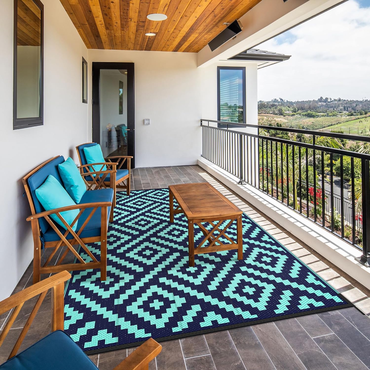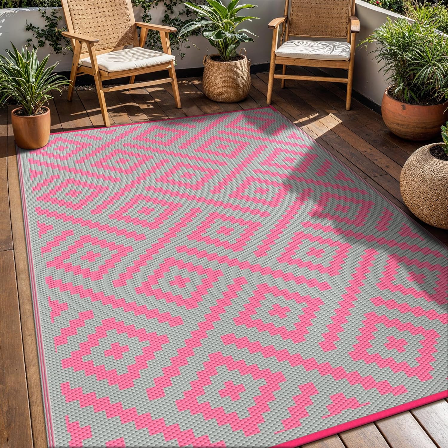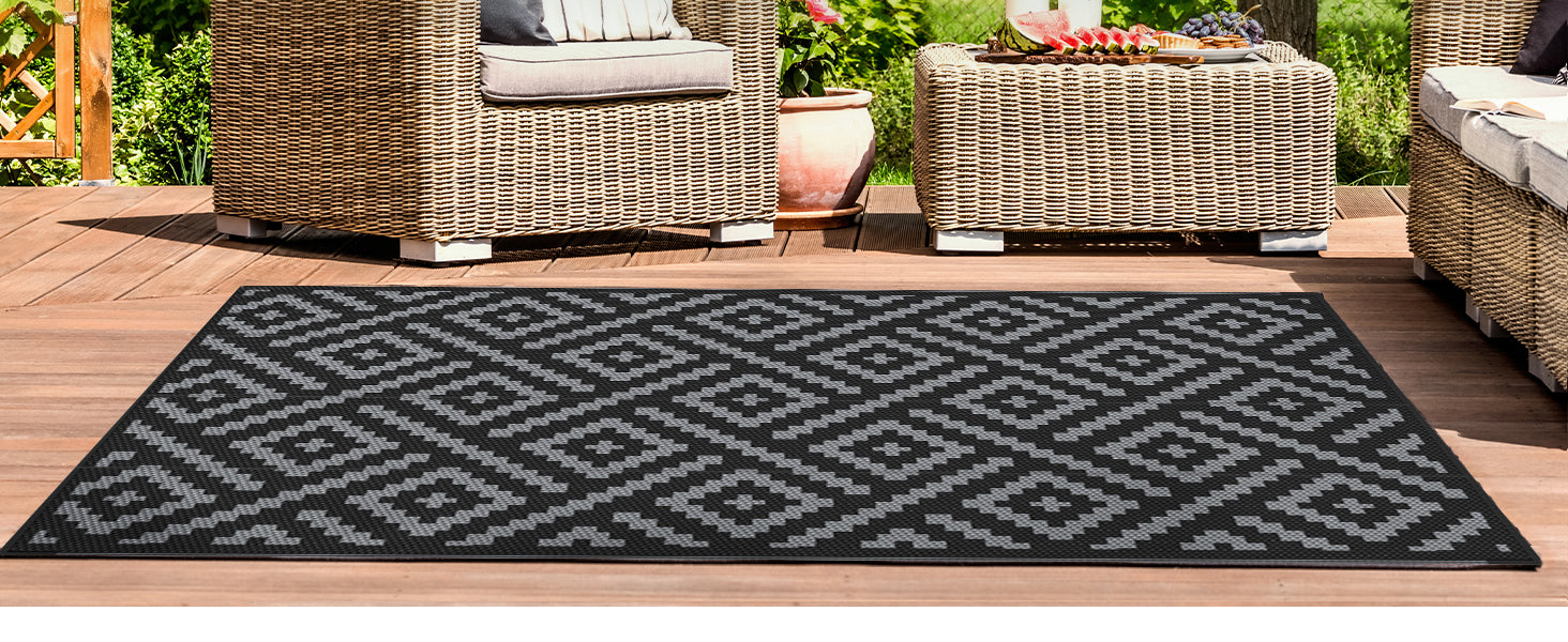 Yes, it’s fully waterproof and made from high-quality woven plastic materials that dry quickly after rain. Perfect for patios, RV setups, camping trips, balconies, or any outdoor space.